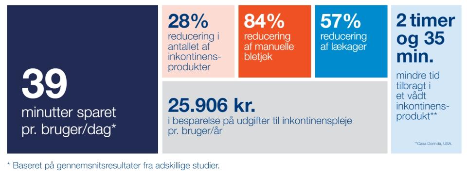 ✓ Tidsbesparelse i kontinensplejen, færre inkontinensprodukter samt mindre vasketøj og affald